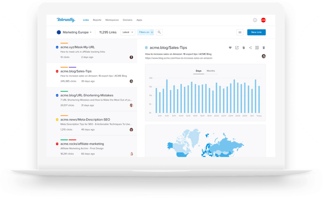 Share branded short links across departments, regions and teams with one cohesive strategy
