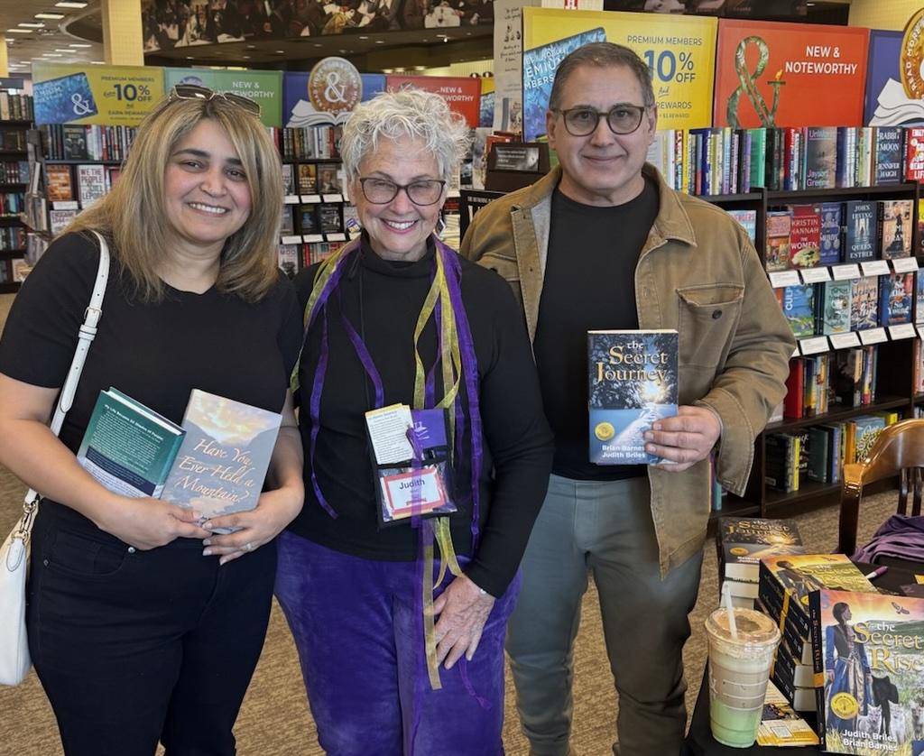 It was a WOWSA Saturday at the Southlands Barnes & Noble. Joseph Caldara and I set up bookselling tables at 9 am and stayed until 5 pm. We both had BEST days. Between the two of us, we sold over 100 copies of our books. When I asked buyers if I could "wrap" it for them ...many said, "YES!" ... and then I added a purple or yellow ribbon around their book and handed it to them. Loved the smiles! . An amazing book buyer connecting day. We were both tired. This spring, I have nine book signings on my calendar.