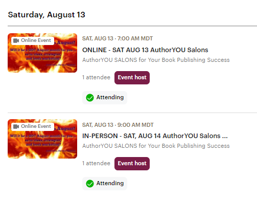 6. August 13 – AuthorYOU Salons – IN-PERSON & ONLINE - AuthorYOU members only