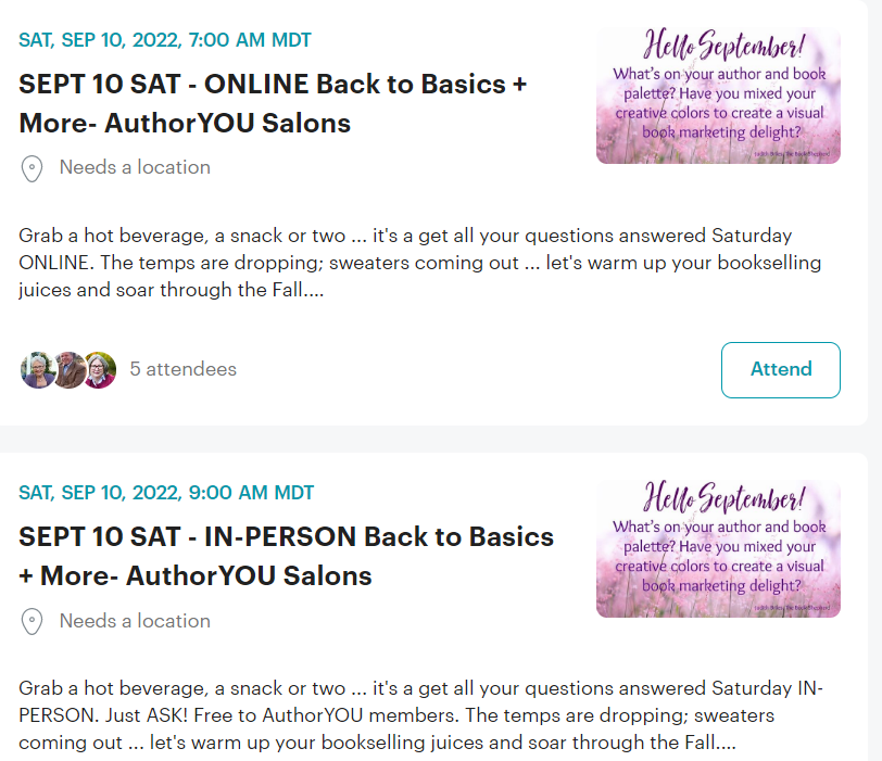 9. September 10 – AuthorYOU Salons – IN-PERSON & ONLINE - AuthorYOU members only
