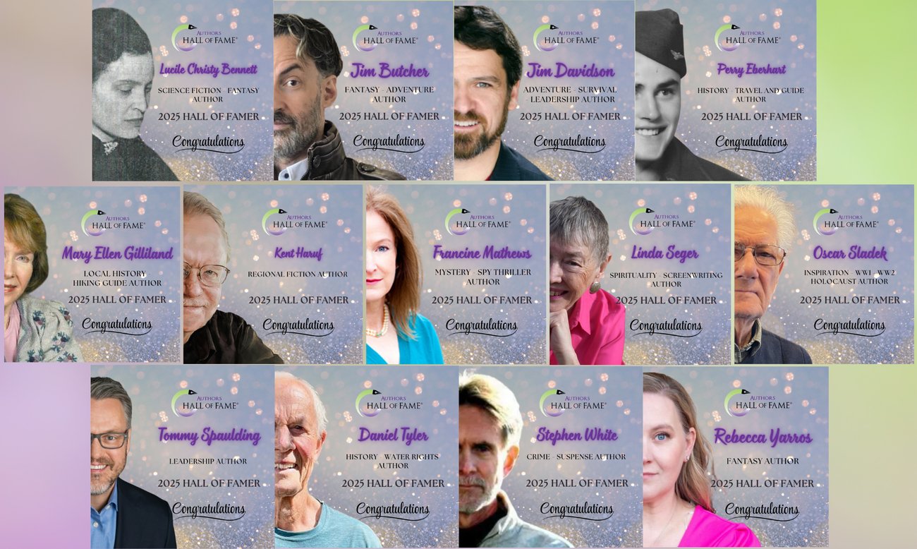 September 6 will be a special evening for 13 authors and for all who are in the audience. That could be you. Each Inductee or a representative will reveal insights of their paths—the ups and downs and amazing events that have happened to them in their author journey. Some have sold mega millions of copies of just a single book; some have streaming series on platforms like Netflix; some have more awards and recognition that your combined fingers and toes; and one has turned books into move magic.