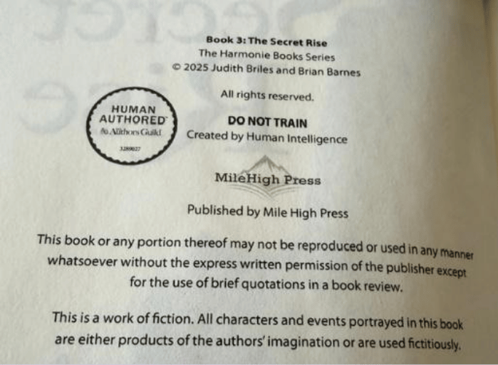 jumped on was the certification of “Human Authored” work when it was first announce last year. All my current books carry the Human Author certification, along with a specific ID number: