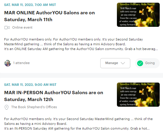5. March 11 AuthorYOU Salons – IN-PERSON & ONLINE - AuthorYOU members only